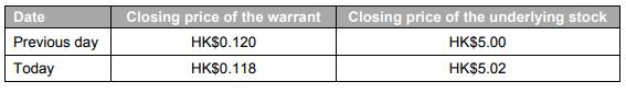 (ii) the market closing time of the warrant and the underlying security was different. Being an eligible security under the closing auction session, it continued to trade in the closing auction session which ended at 4:10 p.m. while the trading in the warrant ceased at 4:00 p.m. In this case, due to the 10 minutes closing time gap, direct comparison of closing price of the warrant and the underlying security might not be appropriate and meaningful, or