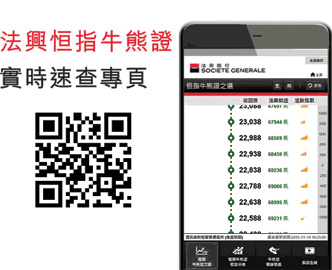 | 恒指連續兩個交易日輕微反彈,已回補了上週五的下跌裂口,惟升至23,700點附近暫時行人止步,短線料仍有調整壓力,暫宜先行觀望。如看好恒指可留意牛證63203,收回價23,108點;也可留意收回價較低的牛證61571,收回價22,908點。相反,如看淡可留意熊證64953,收回價24,188點;也可留意收回價較高的熊證64748,收回價24,388點。 |