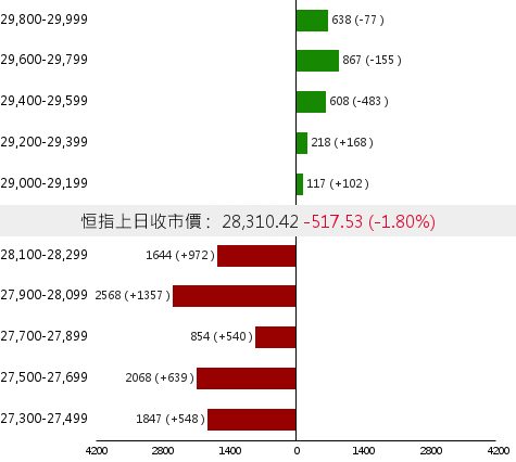 上日收市價 : 28,310.42 -517.53 (-1.80%) |